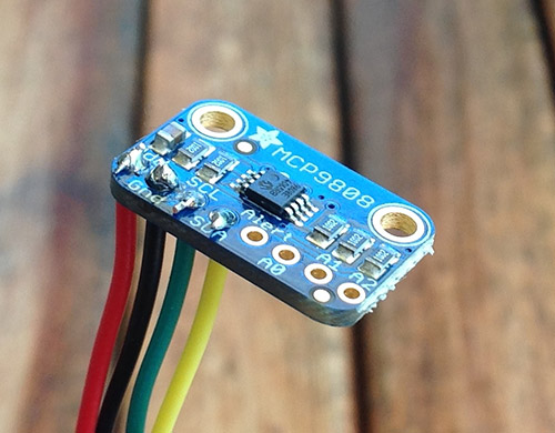 Il motore QMOT QHS4218-51-10-049 Il sensore di temperatura Adafruit MCP9808 dispone di una serie di connessioni. Solo quattro di queste vengono utilizzate in AstroFocus 5.
